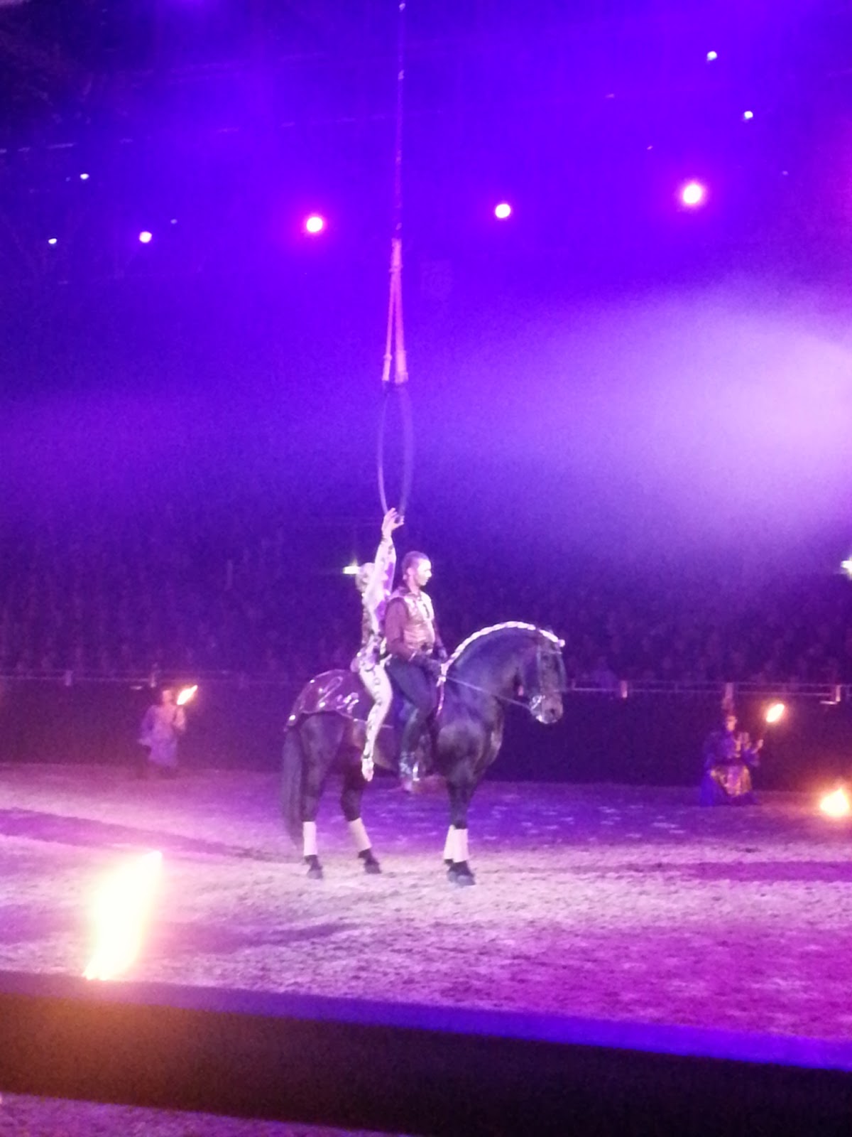 We then kind of went to the circus - where we were entertained by youngsters on vaulting horses - which were huge...think 17-18hands! There was so much going on during this section of the show that i could only focus on the vaulting as the horses were involved - but there were also lots of other big drum type horses lining the arena and a huge troop of dancers/cheerleader type performers who were doing amazing things - which I didn't really watch as I was watching the kids on the vaulting horses!